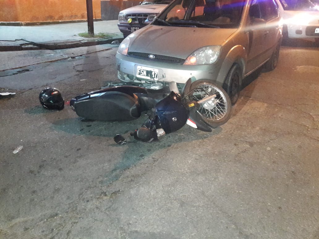 Un joven de 29 años que circulaba en un auto no advirtió la presencia de una moto y la embistió de atrás en el semáforo de Brandsen y Corrientes.