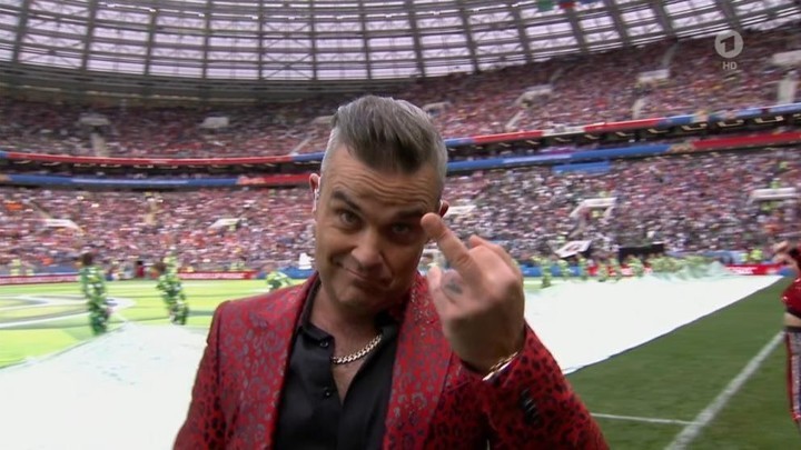 El “Fuck you” de Robbie Williams ante las cámaras. rusia moscu Robbie Williams ceremonia oficial de inauguracion del campeonato mundial de futbol 2018.