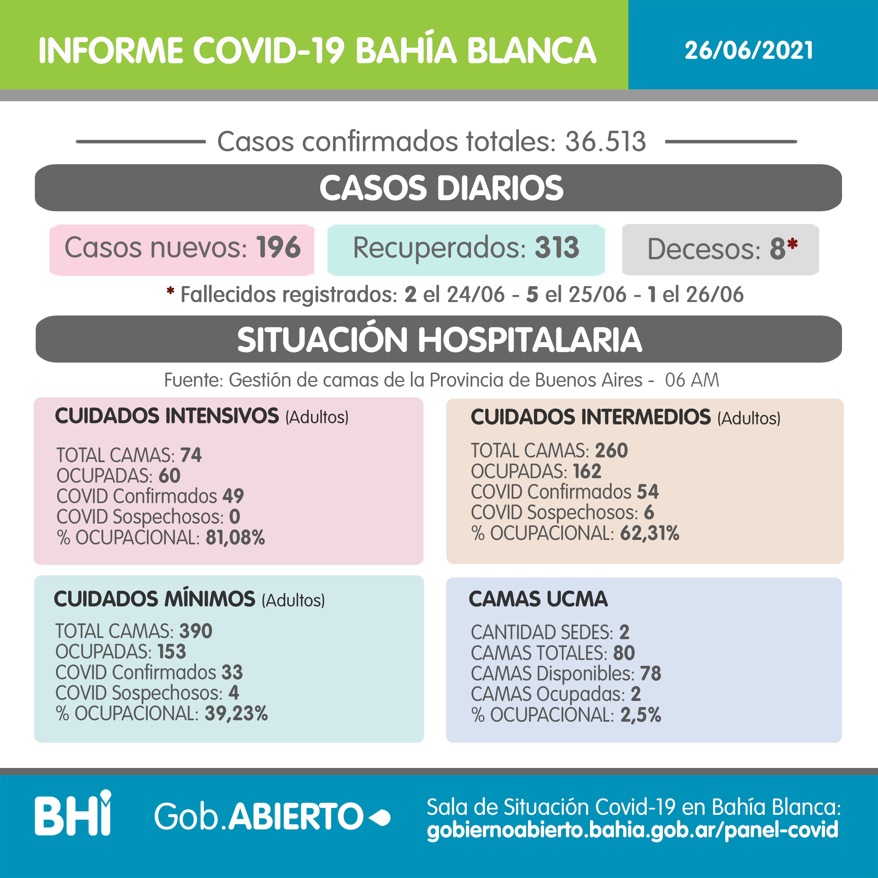 Otras ocho personas murieron en Bahía Blanca por covid-19, informó el Comité de Contingencia local.