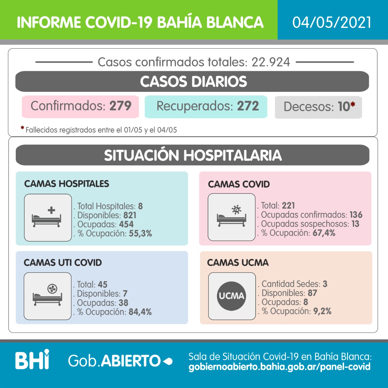 El Comité de Contingencia local anunció este martes que entre el 1 y el 4 de mayo se produjeron diez fallecimientos por covid-19 en Bahía Blanca.