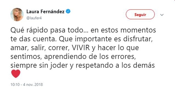 A través de las redes sociales, muchos famosos despidieron a Seijas con emotivos mensajes. Laurita Fernández fue una de las figuras que se manifestó al respecto: “Qué rápido pasa todo… En estos momentos te das cuenta que lo importante es disfrutar, amar, salir, correr, vivir y hacer lo que sentimos, aprendiendo de los errores, siempre sin joder y respetando a los demás“.