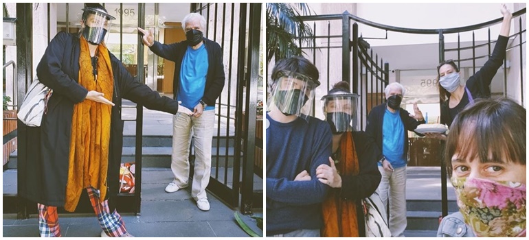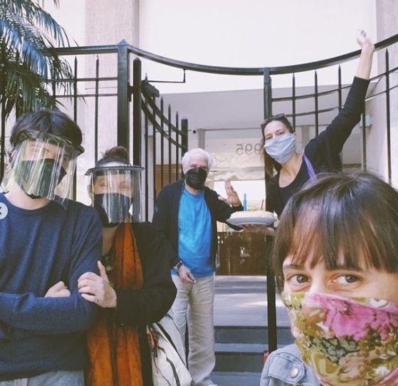 En sus redes sociales compartió varias fotos junto a su familia en la entrada de un edificio y escribió: “Y allá fuimos, separados pero juntos, a festejar un ratito el cumple de mi papá en la vereda. Un guiso, una torta y una botella de champagne“.
