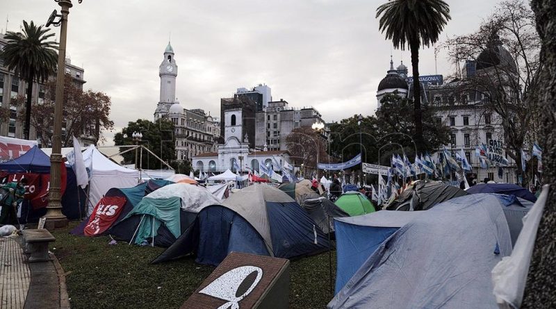 El acampe en la Plaza de Mayo en reclamo de la “libertad” de la referente de la organización Túpac Amaru, Milagro Sala, quien cumple prisión domiciliaria en la provincia de Jujuy y el viernes llegará a los 2.000 días de detención, continuaba este miércoles con el respaldo de un amplio abanico de movimientos sociales, políticos y de pueblos originarios.