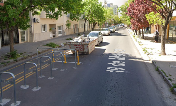 Ayer continuaron los trabajos de remarcación de la ciclovía y corrimiento de los boxes de estacionamiento en calle 19 de Mayo, entre Alvarado y Mitre.