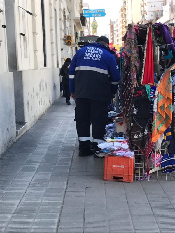 Estas imágenes enviadas por los oyentes y lectores de De la Bahía y delabahia.com.ar, ponen en duda el control el buen funcionamiento del control urbano, establecen un vinculo extraño entre quienes deberían encargarse de controlar el tránsito de Bahía Blanca y los puestos, de dudosa habilitación, de los comerciantes callejeros del centro de la ciudad.