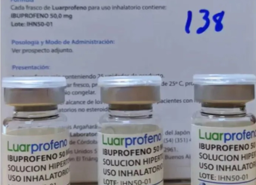 Mediante un comunicado emitido por la ANMAT se indicó que “Atento a la información difundida respecto a la autorización del estudio clínico con el producto LUARPROFENO (Ibuprofeno en solución inhalatoria y nebulizable) para el tratamiento de COVID-19, esta Administración Nacional informa que no se ha iniciado ningún trámite para realizar la evaluación del protocolo mencionado”.