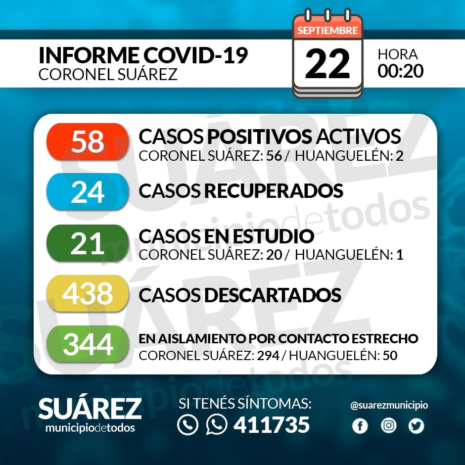 Sociedad Coronavirus – Casos activos, recuperados y en estudio en Coronel Suárez 22 septiembre, 2020 De La Bahía Noticias Comentarios