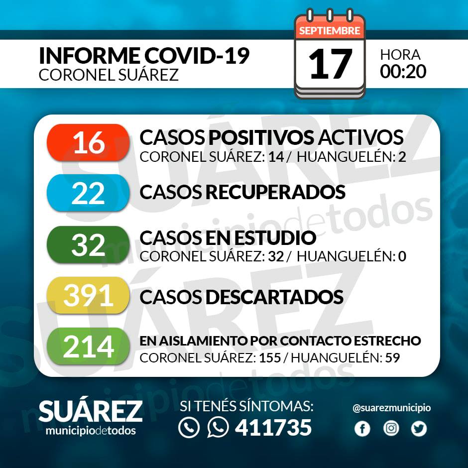 Sociedad Coronavirus – Casos activos, recuperados y en estudio en Coronel Suárez 17 septiembre, 2020 De La Bahía Noticias Comentarios
