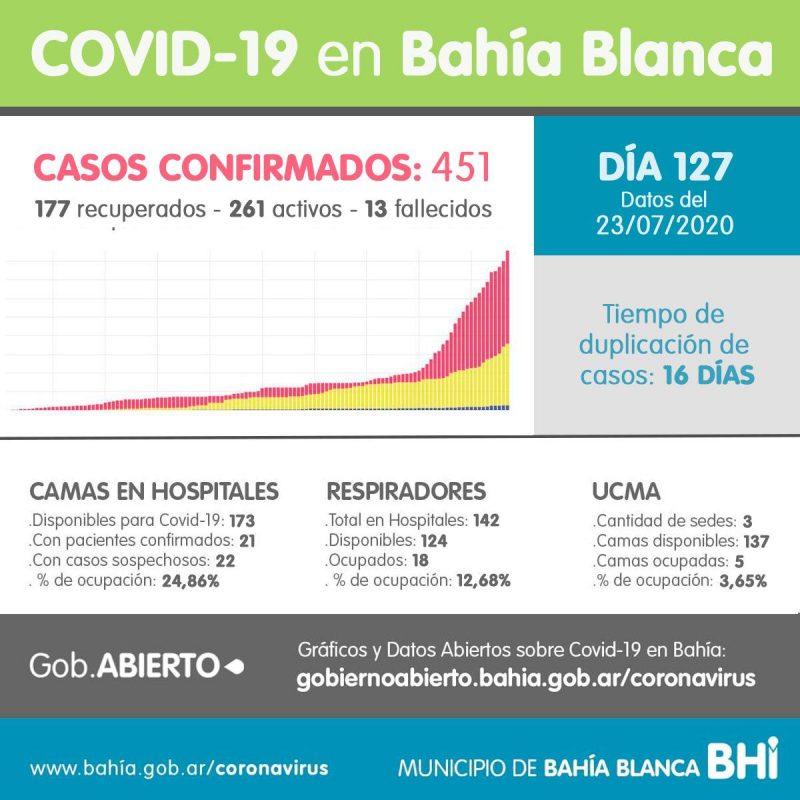 El Comité de Contingencia informó que se han registrado 22 nuevos casos positivos de coronavirus en Bahía Blanca, datos que corresponden a las últimas 24 horas.