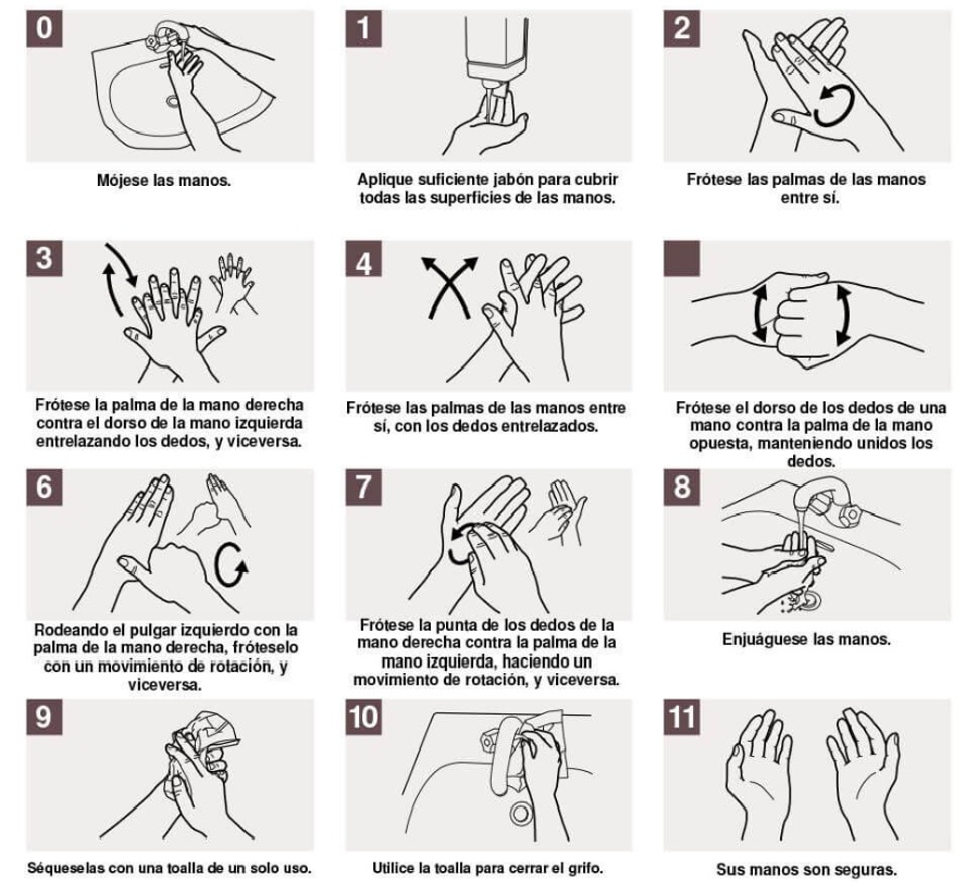 Pasos recomendados por la OMS para una correcta higiene de manos: