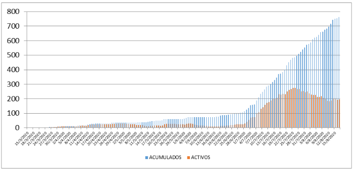 En total hay 762 confirmados, de los cuales están 197 activos, 544 recuperados y 21 fallecidos.‬