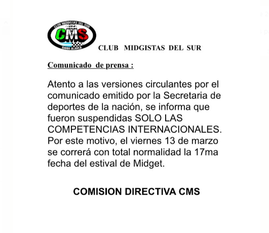 Locales Coronavirus: qué pasará con la 17º fecha de midget 12 marzo, 2020 De La Bahía Noticias Comentarios