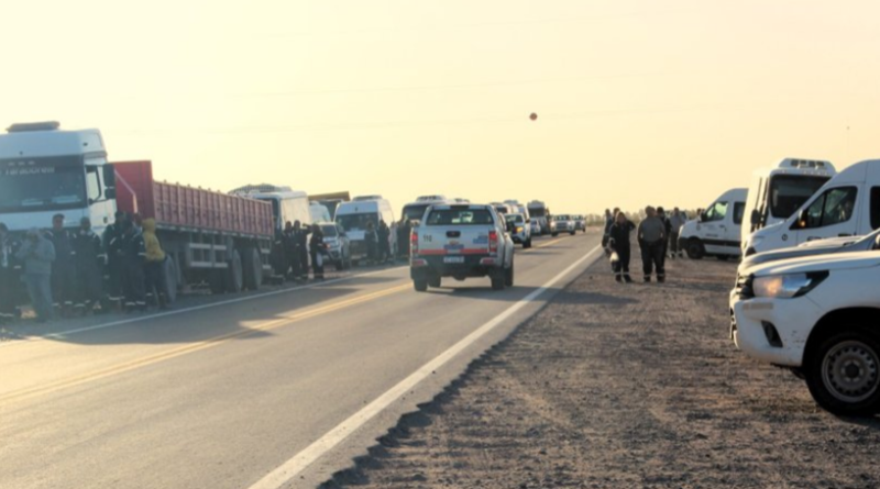 Desde las 6.30 Gendarmería, la Prefectura y la Policía Federal desplegaron una gran cantidad de efectivos bajo el “protocolo antipiquetes”. Minutos después de las 9, el gremio inició la movilización. (Diario Río Negro)