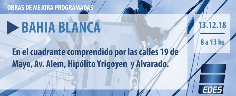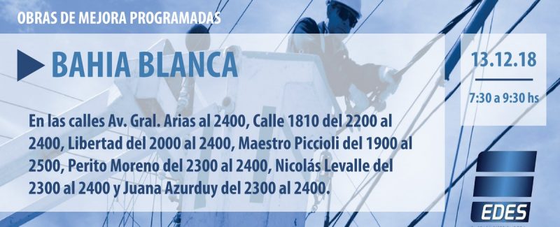 La empresa EDES anunció varios cortes de energía para este jueves en la ciudad, por tareas de mejoras y mantenimiento.