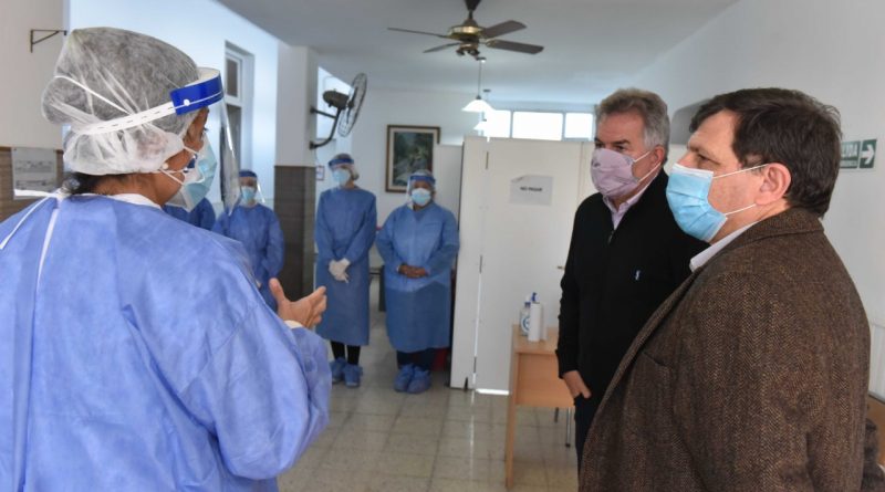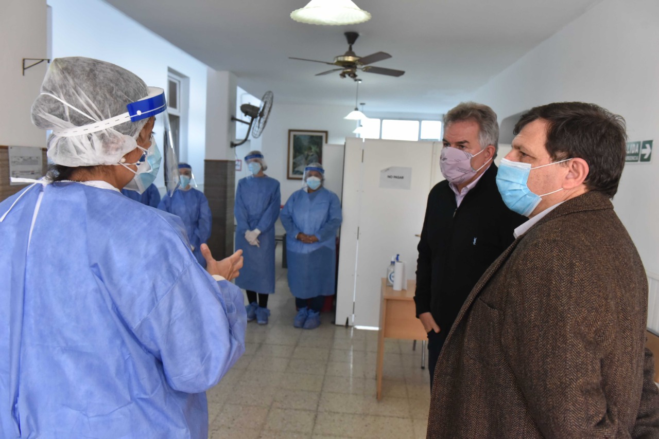 El intendente Héctor Gay supervisó esta mañana los trabajos que se desarrollan en el nuevo punto de testeo rápido que funciona en instalaciones del Centro de Jubilados y Pensionados Cono Sur, Caronti 72.