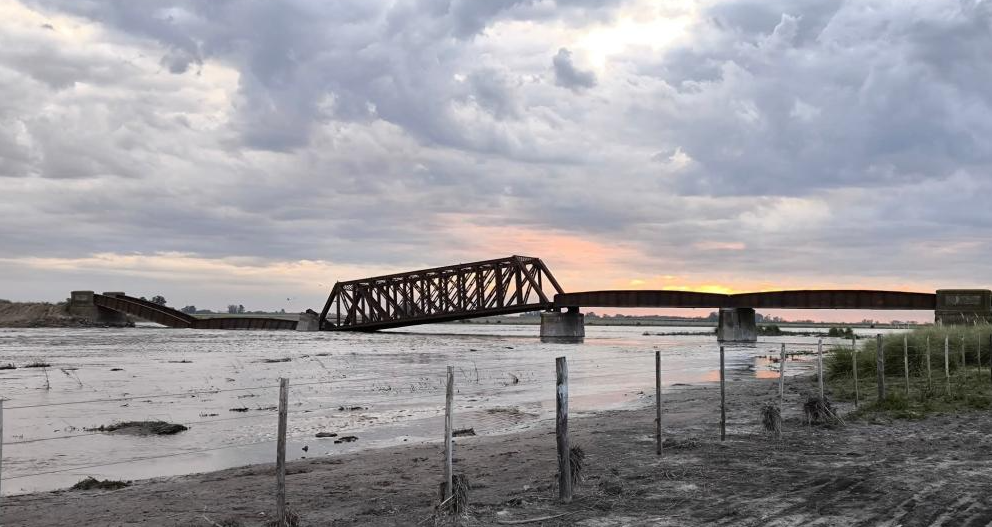 Crecida del río Salado: se derrumbó un puente ferroviario y advierten por otro de la ruta 5