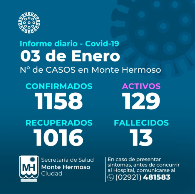Locales Cuántos casos activos de covid-19 hay en Monte Hermoso 3 enero, 2022 De La Bahía Noticias Comentarios