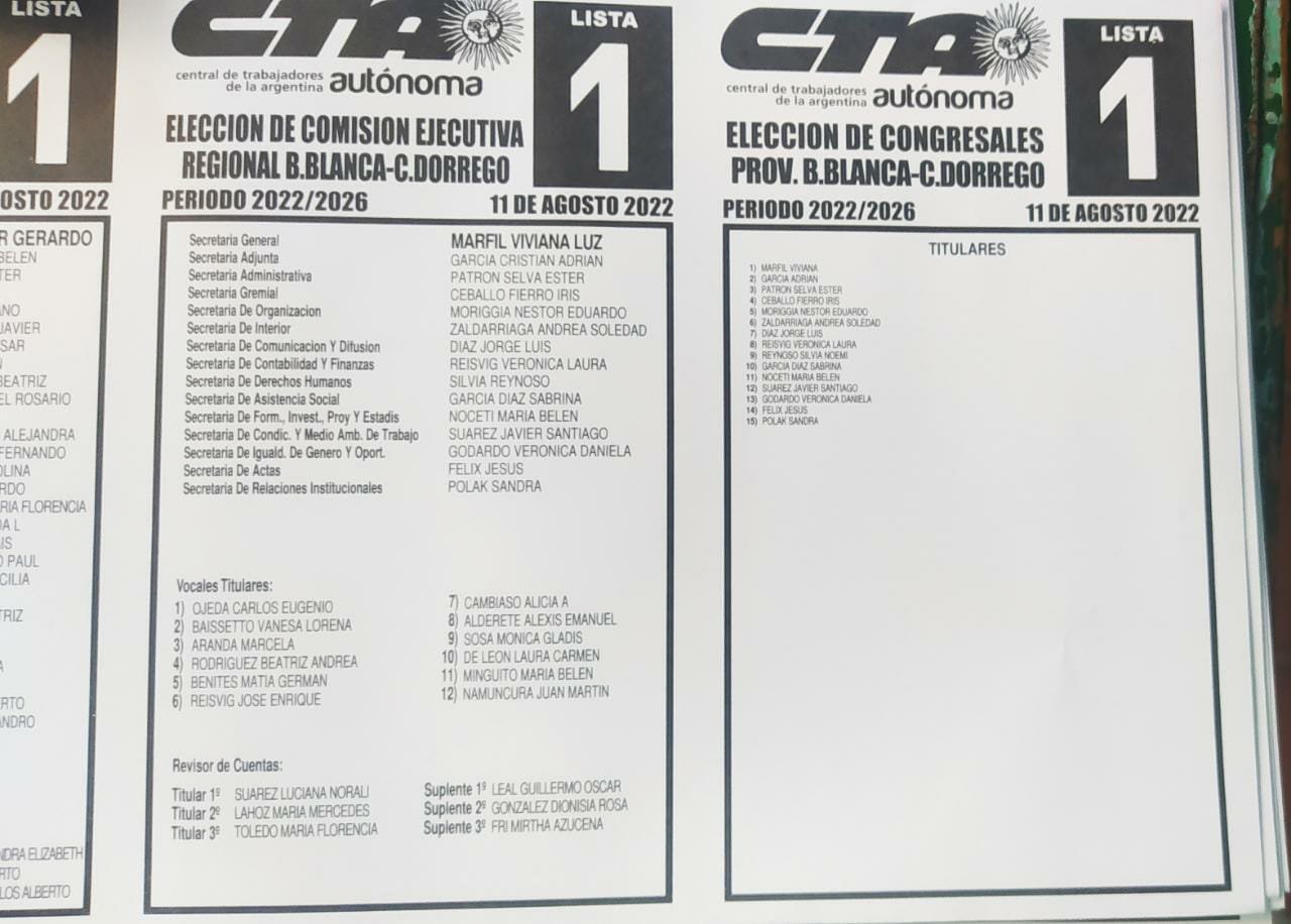 Algunos integrantes de la lista 1 “German Abdala” de la CTA autónoma Bahía Blanca-Dorrego decidieron dar “un paso al costado en la participación en la comisión de la lista mencionada ante los hechos de público conocimiento y no pudiendo determinar con precisión la transparencia de la elección del pasado 11 de agosto, hasta tanto la junta electoral se expida”