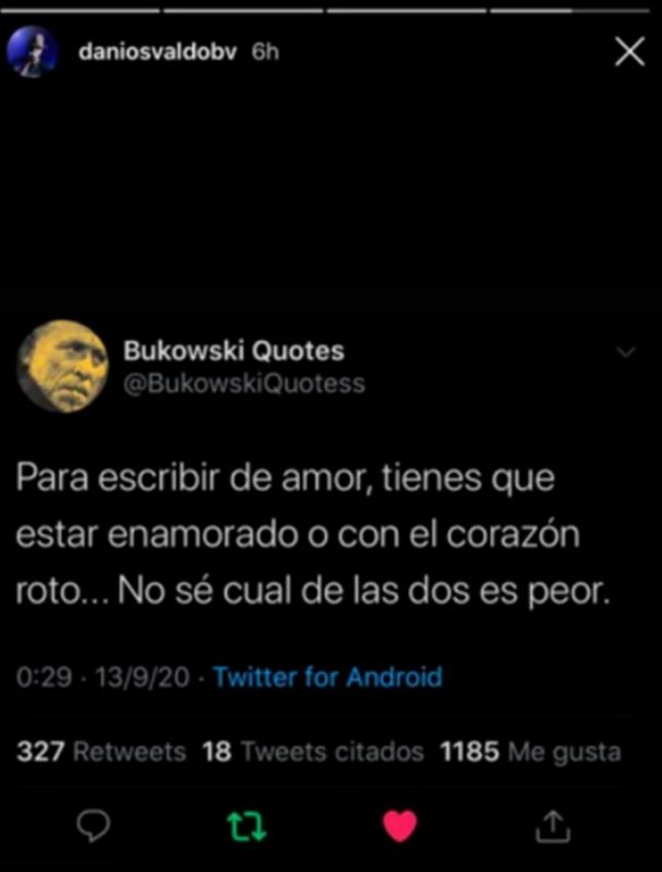 Luego de que se difundiera esta información, Daniel Osvaldo, quien durante los últimos días se encargó de cuidar a Momo, escribió un nostálgico mensaje citando al escritor Charles Bukowski: “Para escribir de amor, tienes que estar enamorado o con el corazón roto… No sé cuál de las dos es peor”.