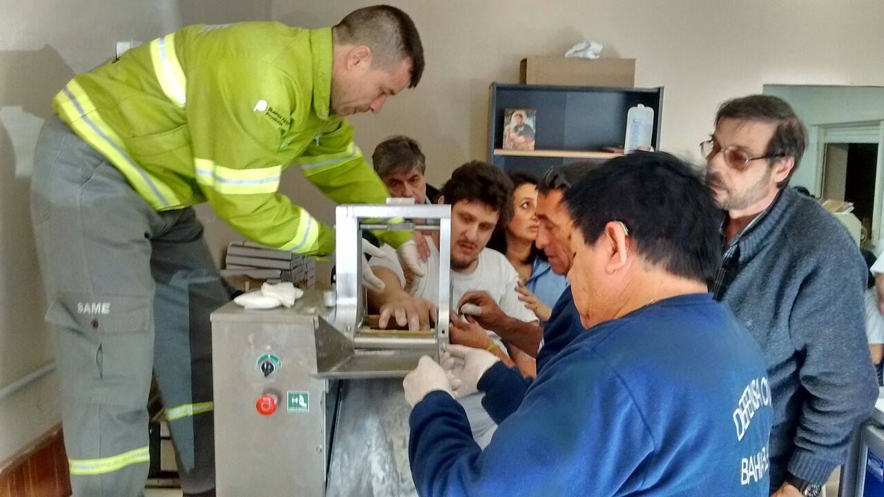 Defensa Civil ayudó a un empleado que se agarró el dedo con una máquina raviolera