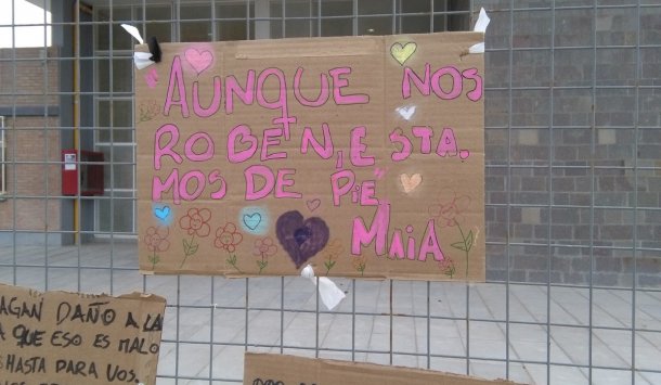 La plata que se llevaron los ladrones era para un viaje de estudios de alumnos de 4°, 5° y 6°. “Aunque nos roben estamos de pie”, escribieron los chicos en uno de los tantos carteles que colgaron en el colegio.
