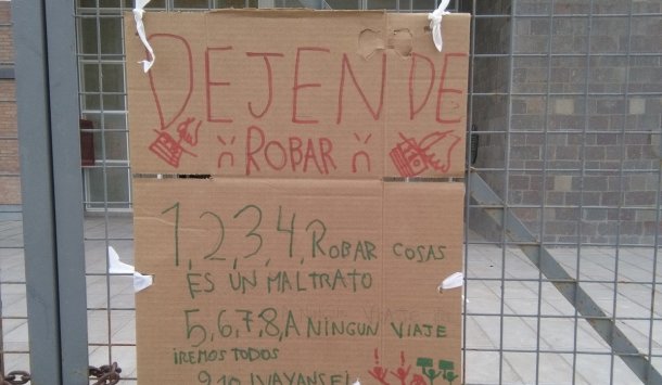 Tras el robo, los chicos colgaron una serie de carteles con mensajes a los ladrones.