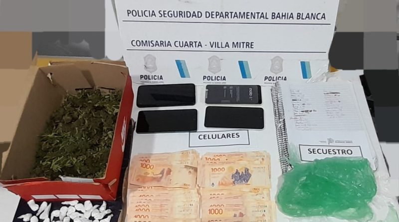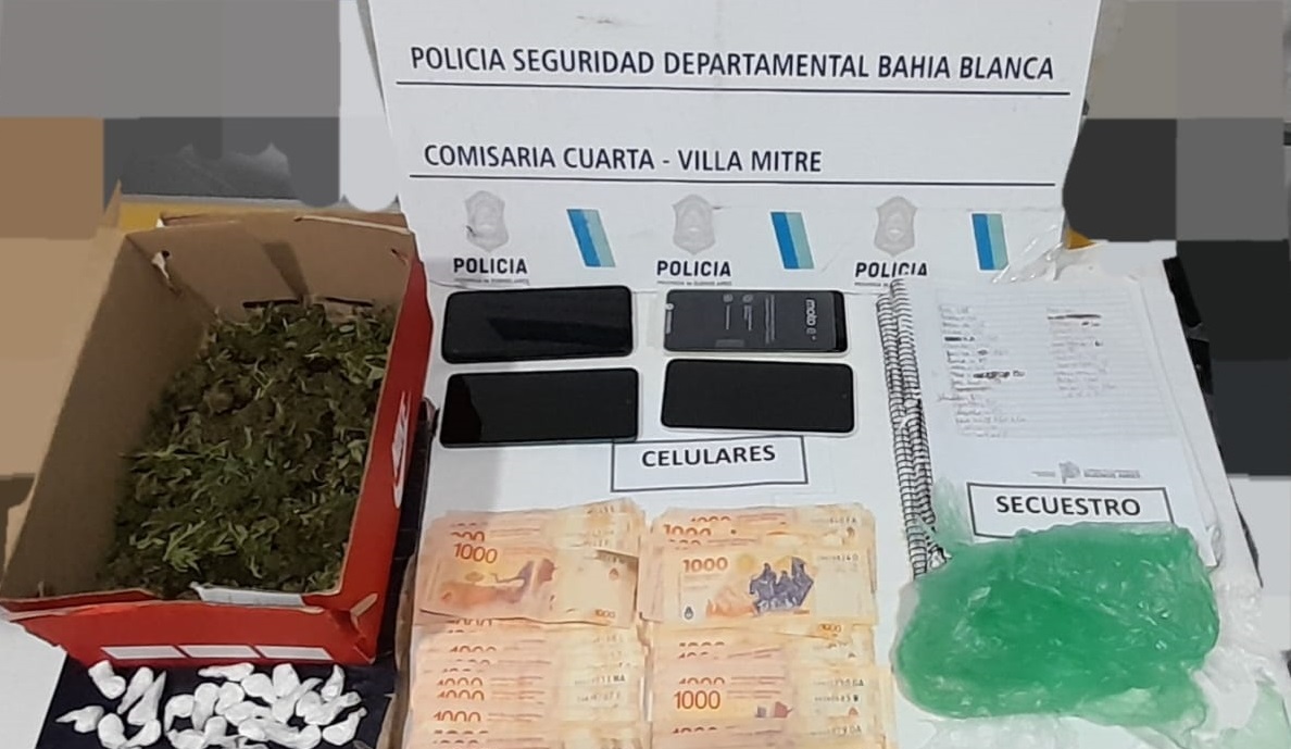 Los uniformados secuestraron cuatro teléfonos, 22 envoltorios de nylon de cocaína fraccionada, una caja de cartón con cogollos de marihuana, dos cuadernos con anotaciones, dos tapas de balanzas digitales, recortes de nylon y dinero en efectivo.