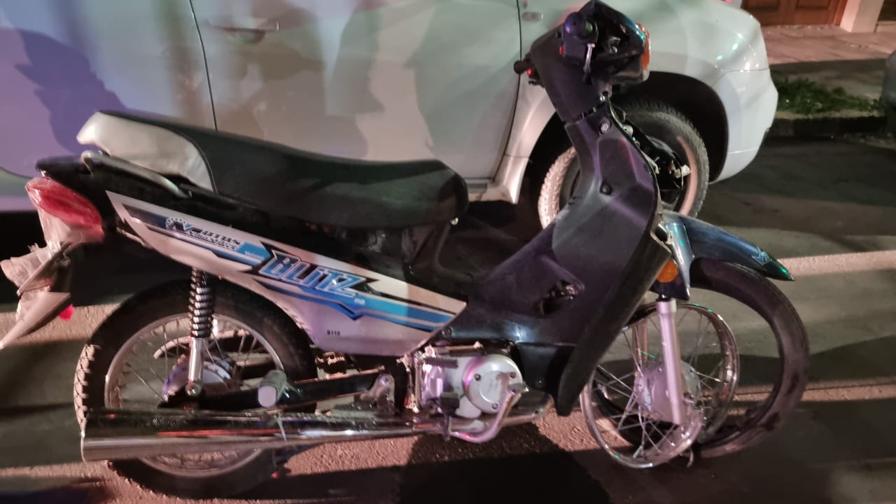 El hombre que perdió el equilibrio de la moto que manejaba en Moreno al 200, chocó contra un auto estacionado y cayó al asfalto terminó detenido ya que el rodado era robado.