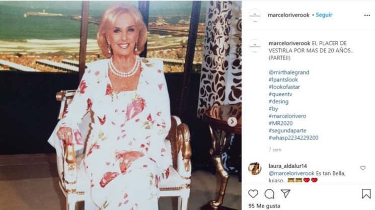 En su cuenta de Instagram, Rivero se presenta diciendo que tuvo “el placer de vestir por más de 20 años” a Mirtha Legrand, con varias imágenes de sus diseños utilizados por la conductora. En una de sus publicaciones se lo ve junto a la artista al aire del “Almorzando…”, por lo que es verdad que trabajó con ella, al menos en algunas ocasiones.