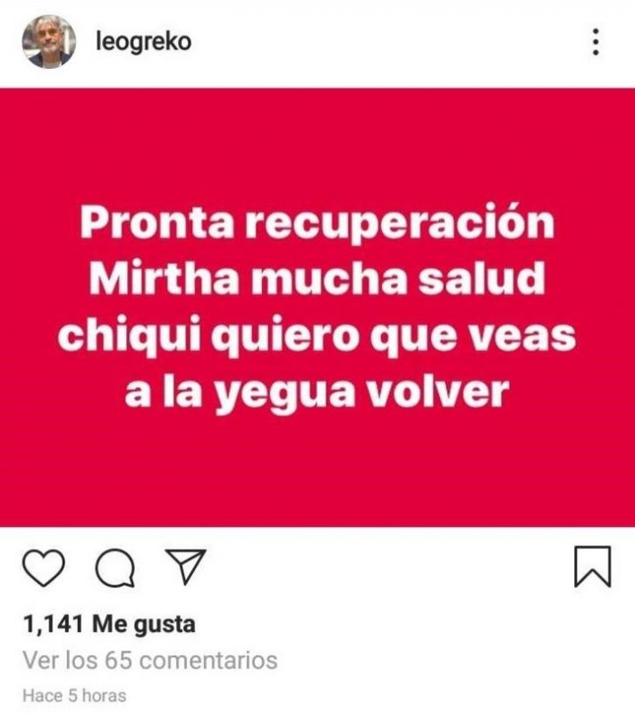 Frente a este panorama, las redes se llenaron de comentarios positivos y buenos deseos para Legrand. Sin embargo, hubo uno en particular que fue muy desafortunado. Y fue el del conductor Leonardo Greco, ferviente militante K, quien se expresó en su cuenta de Instagram y generó polémica.