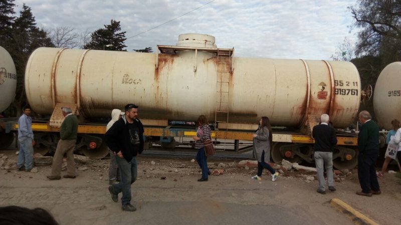 Minutos más tarde, el personal ferroviario desenganchó la formación y unos 20 vagones quedaron parados desde la estación local hacia Saldungaray.