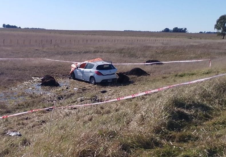 Según se supo, el siniestro ocurrió pasadas las 13 cuando el conductor de un Peugeot 307 perdió el control del vehículo, se despistó y embistió un vacuno que se encontraba junto a otros en el lugar.