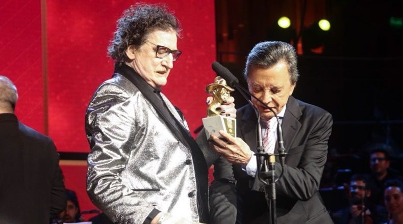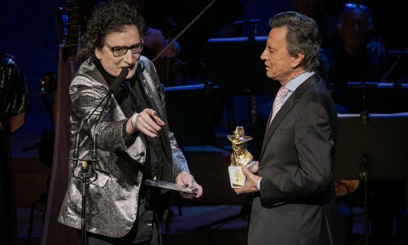 En una premiación en la que los hombres doblaron a las mujeres en cantidad de galardones, el ex Sui Generis le dedicó el premio máximo –entregado por su amigo Palito Ortega– a Gardel, María Gabriela Epumer y a Gustavo Cerati, entre otros, y cerró con un pedido: “Hay que prohibir el autotune”.