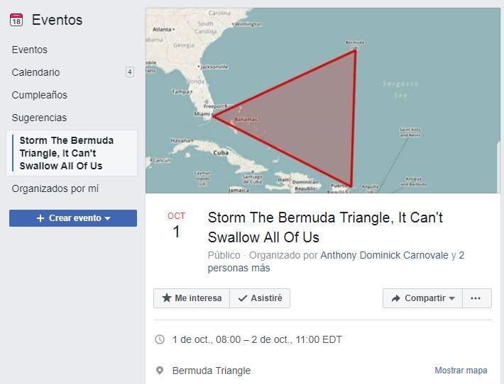 ¿Hay lugar para otra actividad igual de bizarra y viral? Por supuesto. Ahora crearon en Facebook el evento: “Asaltar el Triángulo de las Bermudas”. El argumento: “No puede tragarnos a todos”.