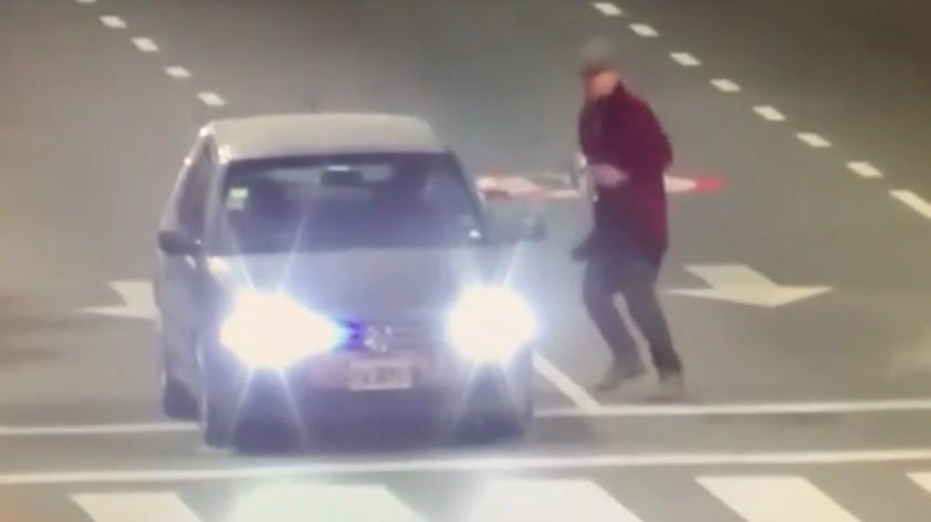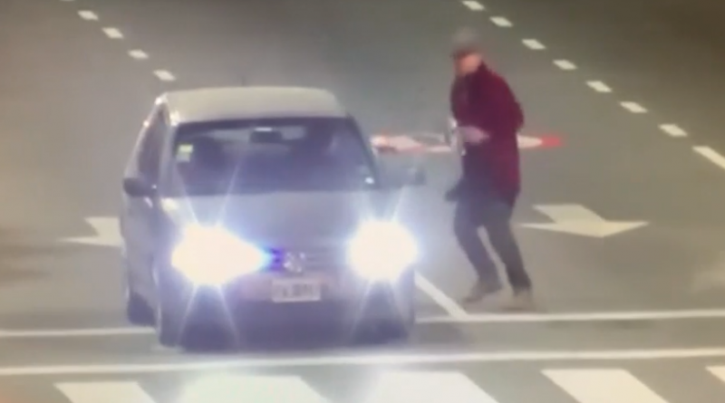 Según se observa en el video, desde el interior del habitáculo, el conductor, que luego se supo era un agente de la División Central de Datos de Drogas de la PFA, le hizo un gesto con el dedo para que no limpie el vidrio y cuando el joven cruza por delante del auto, el automovilista le tira el auto encima.