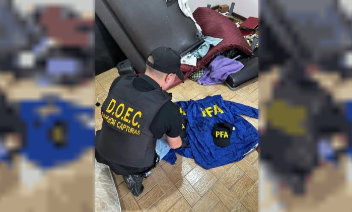 A su vez, se concretó la aprehensión de Sebastián Baratay Ortiz, acusado por encubrimiento agravado y se secuestraron diversas prendas con la inscripción de la Policía Federal: un chaleco reflectario naranja, un chaleco azul y amarillo, balizas, camperas azules, pinza cortapernos, dos celulares, un auto Hyundai (patente JXU 615) y un quepí con logo de la Policía bonaerense.