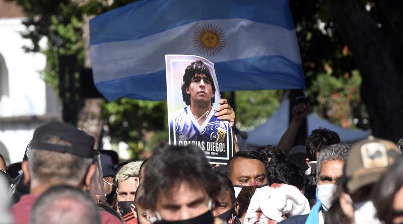 Además, los miembros de la “12” montaron una gigantografía de Maradona como si fuera en una tribuna en el frente de uno de los monumentos ubicados en Plaza de Mayo, donde se instalaron desde pasada la medianoche.