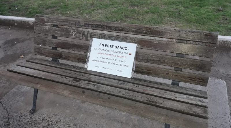 En el marco del Día de los Enamorados, a varios transeúntes les llamó la atención un cartel que fue colocado en un banco de la Plaza Rivadavia por “Carlos J.”