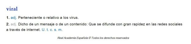 Además, la Academia agregó a la palabra “viral” la definición que todos los usuarios de redes sociales manejan: “Dicho de un mensaje o de un contenido que se difunde con gran rapidez en las redes sociales a través de internet”.