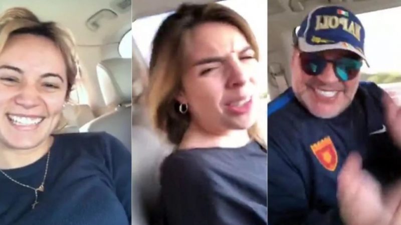 Rocío grabó a Diego cantando y bailando “Échame la culpa” de Luis Fonsi y Demi Lovato arriba de un auto y en un momento le acercó la cámara a Dalma, quien frunció el ceño y se alejó. El exfutbolista se río y mandó saludos.