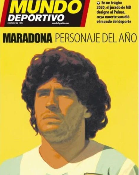 Otro fuerte recuerdo para Diego Maradona lanzó este 31 de diciembre el diario español Mundo Deportivo, que eligió al Diez para su última tapa de 2020 como Personaje del Año. Así, una pintura del artista David de las Heras con el joven rostro de Diego ilustró la publicación.