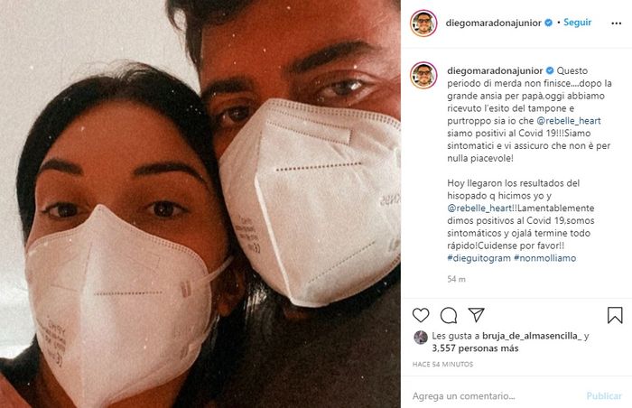 El 5 de noviembre tanto Diego Junior como su mujer Nunzia Pennino recibieron los resultados positivos del hisopado.