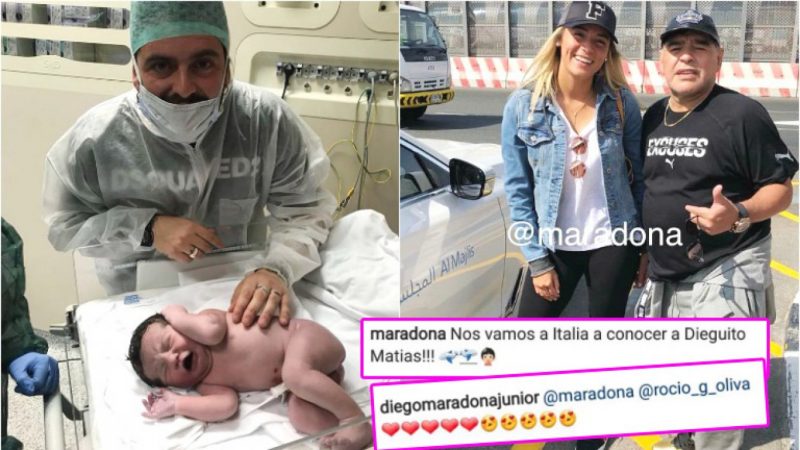 “Les cuento que hoy nació mi nieto Diego Matías Maradona, pesó 3 kilos y medio, y es hermoso. Estoy muy feliz y me llena el corazón. Lo voy a disfrutar como no lo pude hacer con mi hijo Diego“, fue el mensaje que Diego Maradona compartió en Instagram junto a la dulce postal del bebé con su papá.