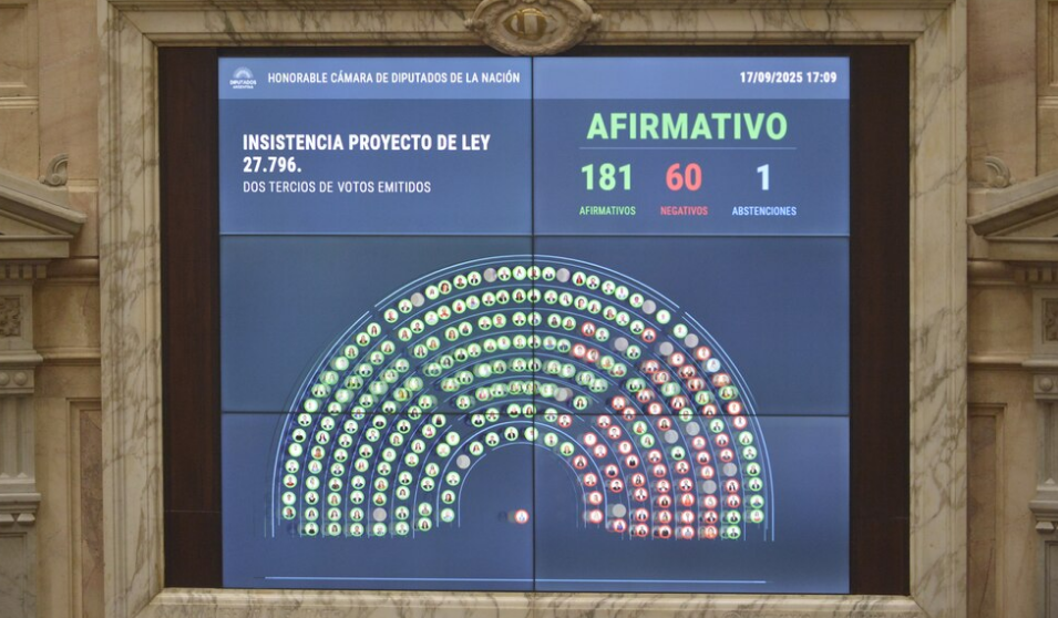 El oficialismo de La Libertad Avanza (LLA), en alianza con el PRO, llegó debilitado a la sesión para alcanzar el tercio de votos necesarios que se requiere para sostener los vetos, tras perder las elecciones bonaerenses del 7 de septiembre frente al peronismo.