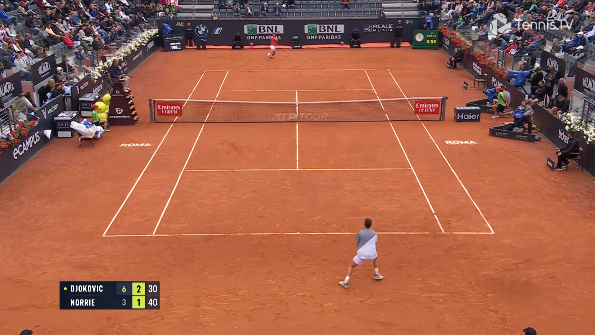 Djokovic, máximo favorito al título en el Foro Itálico romano, se impuso sobre Norrie (13) luego de una hora y 27 minutos de juego para instalarse entre los ocho mejores del torneo que conquistó en seis ocasiones, la primera en 2008 y la última el año pasado.