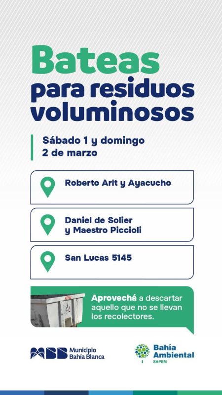 Locales Dónde están este fin de semana las bateas para descartar grandes residuos y restos de poda 28 febrero, 2025 De La Bahía Noticias Comentarios
