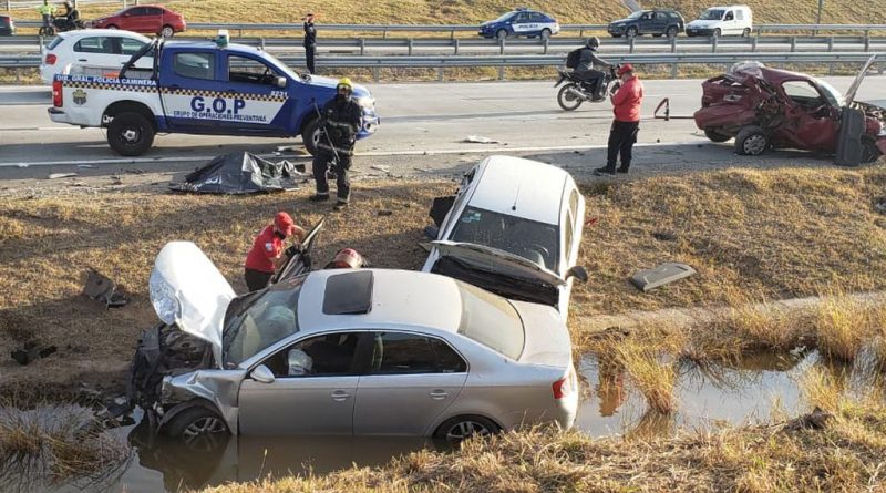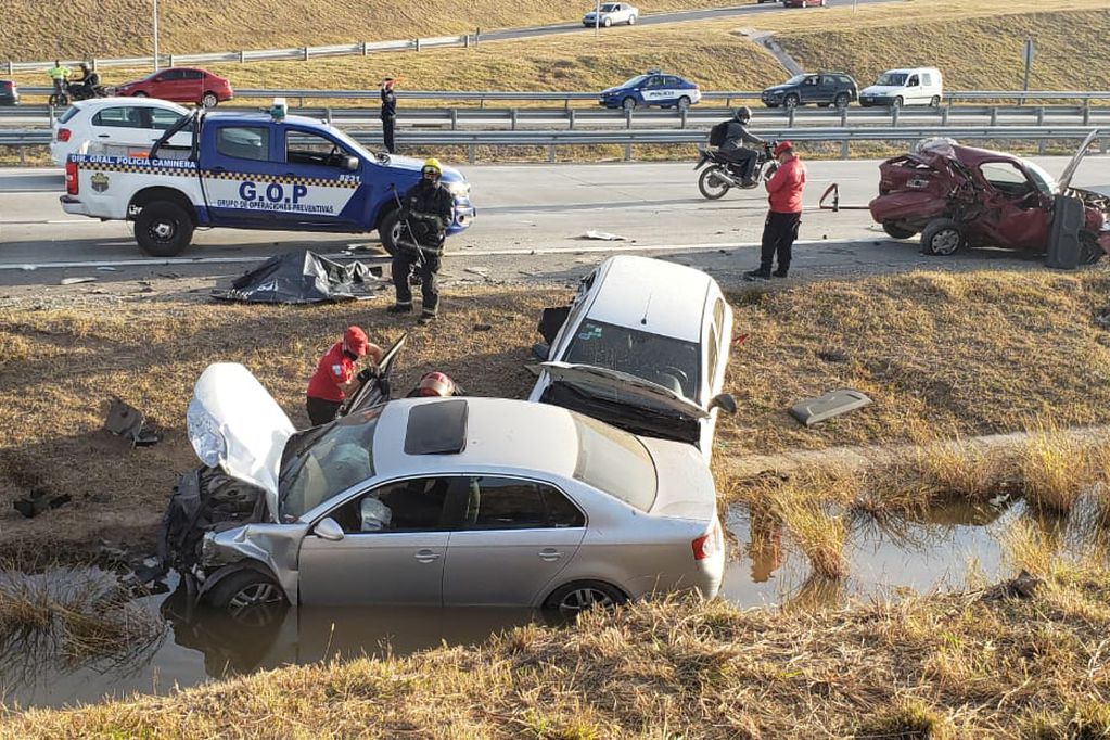 Según las primeras afirmaciones de los efectivos policiales que trabajan en el lugar, el impacto se produjo entre el automóvil que circulaba a la altura de avenida Fuerza Aérea a gran velocidad y que dio contra otros dos que estaban en la banquina porque uno de ellos tenía un desperfecto mecánico, confirmó a los medios el comisario inspector Mario Véliz, de Policía Caminera.