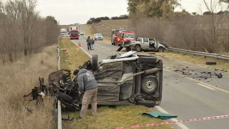 La Berlingo quedó volcada sobre su costado derecho, en la banquina y con el frente completamente destrozado, encima del guardrrail. Unos metros más adelante quedó la Chevrolet, sobre la banquina de enfrente, también con su parte delantera muy dañada, los airbags activados aunque con sus cuatro ruedas sobre el piso.