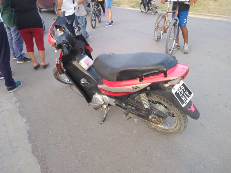 Una motocicleta Zanella 110 cc, al mando de Milagros Torres, de 18 años colisionó contra un Renault Clio (DTW 294) conducido por Matías García, de 24 años.