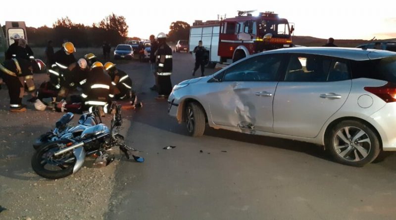 El choque se produjo cuando el auto intentó doblar hacia el camino vecinal y la moto no pudo esquivarlo e impactó contra la puerta del conductor.
